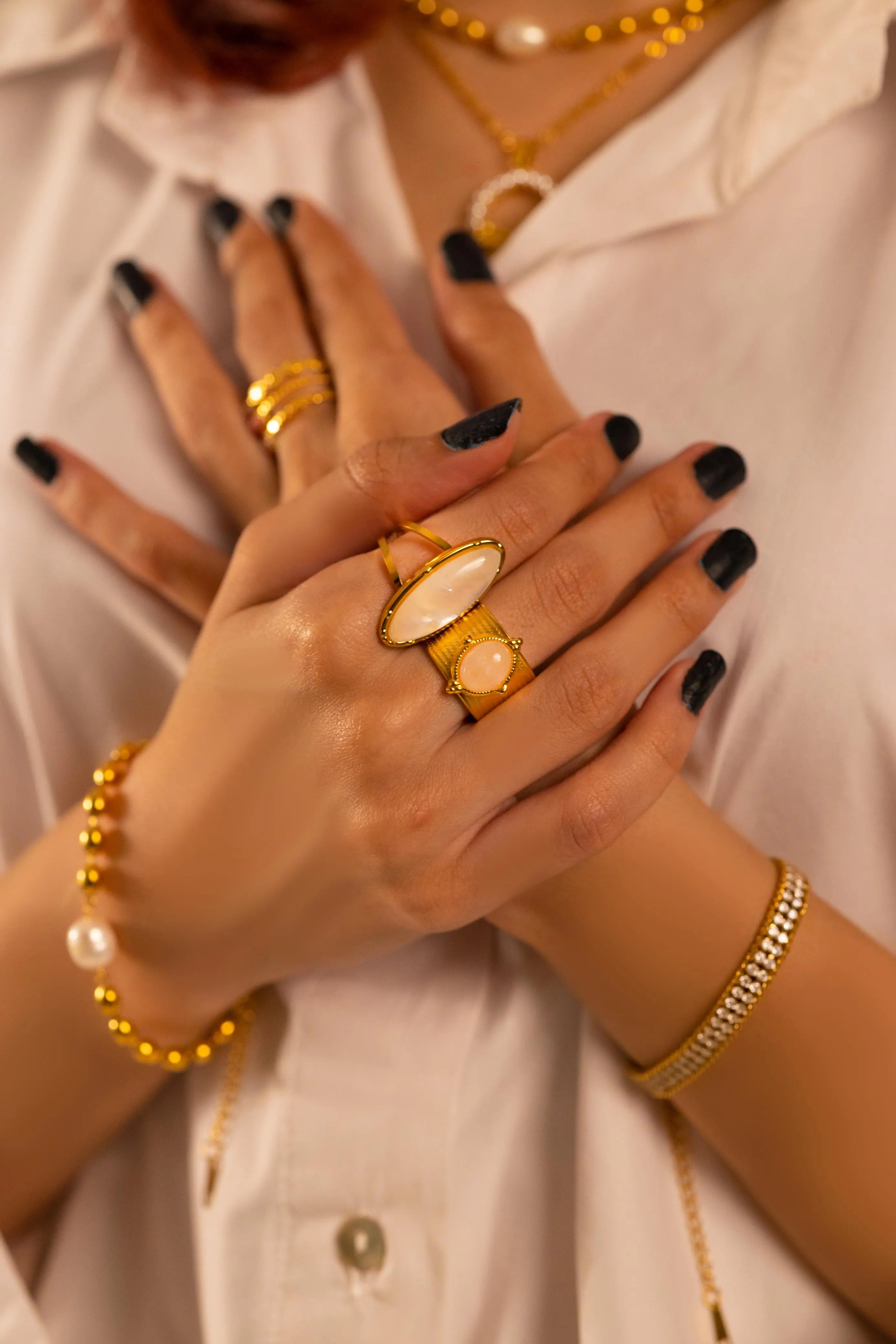 Product Info: Our stainless steel jewelry, meticulously crafted with 18k gold PVD plating for enduring beauty and durability. Designed for comfort and safety, our pieces are waterproof and resistant to tarnishing, ensuring effortless style without compromise. Enjoy timeless elegance and long-lasting quality with minimal maintenance, perfect for those with sensitive skin.
