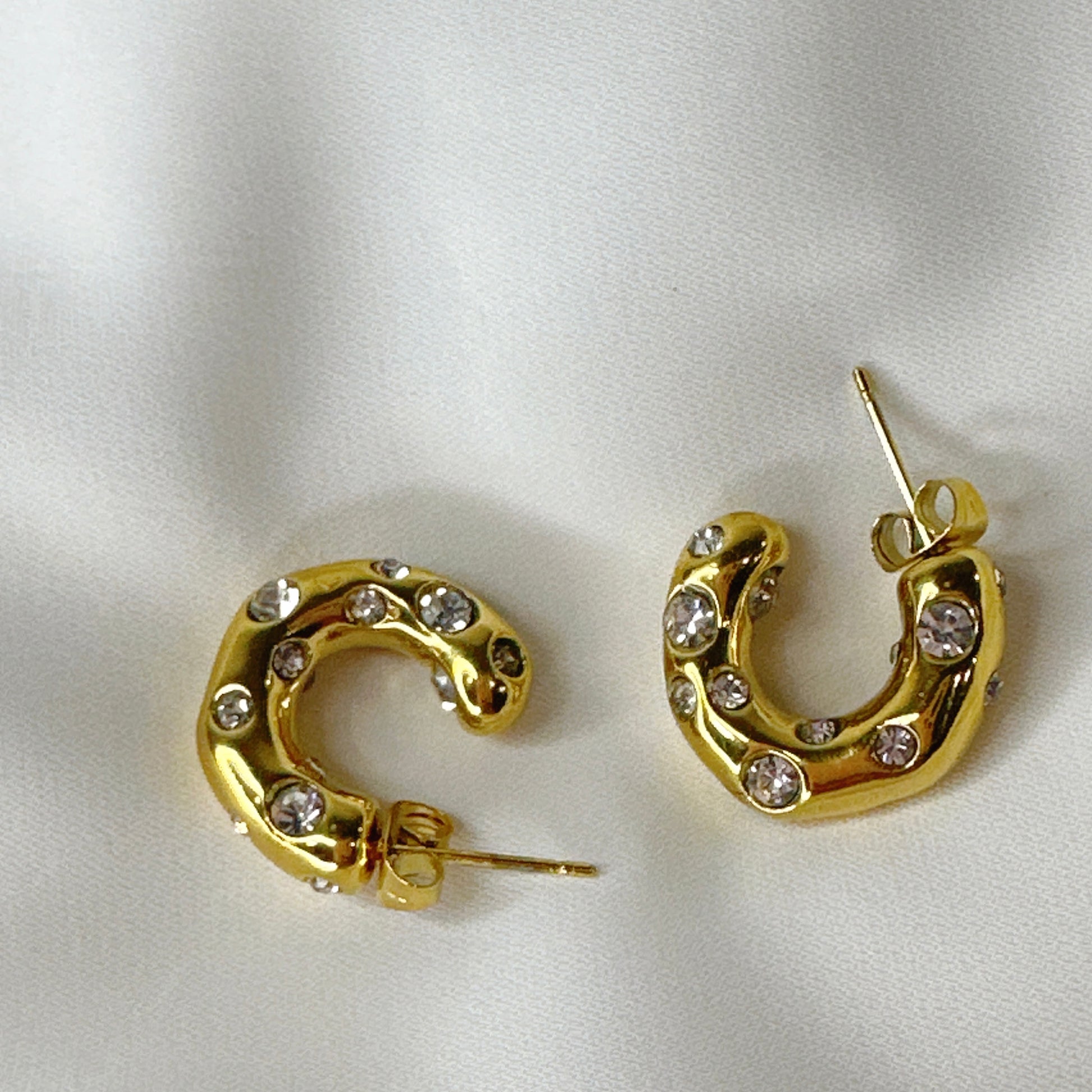 Dazzle with our Zircon-Studded Hoop Earrings. Crafted in 18k gold-plated stainless steel, these hoops combine timeless elegance with enduring quality.