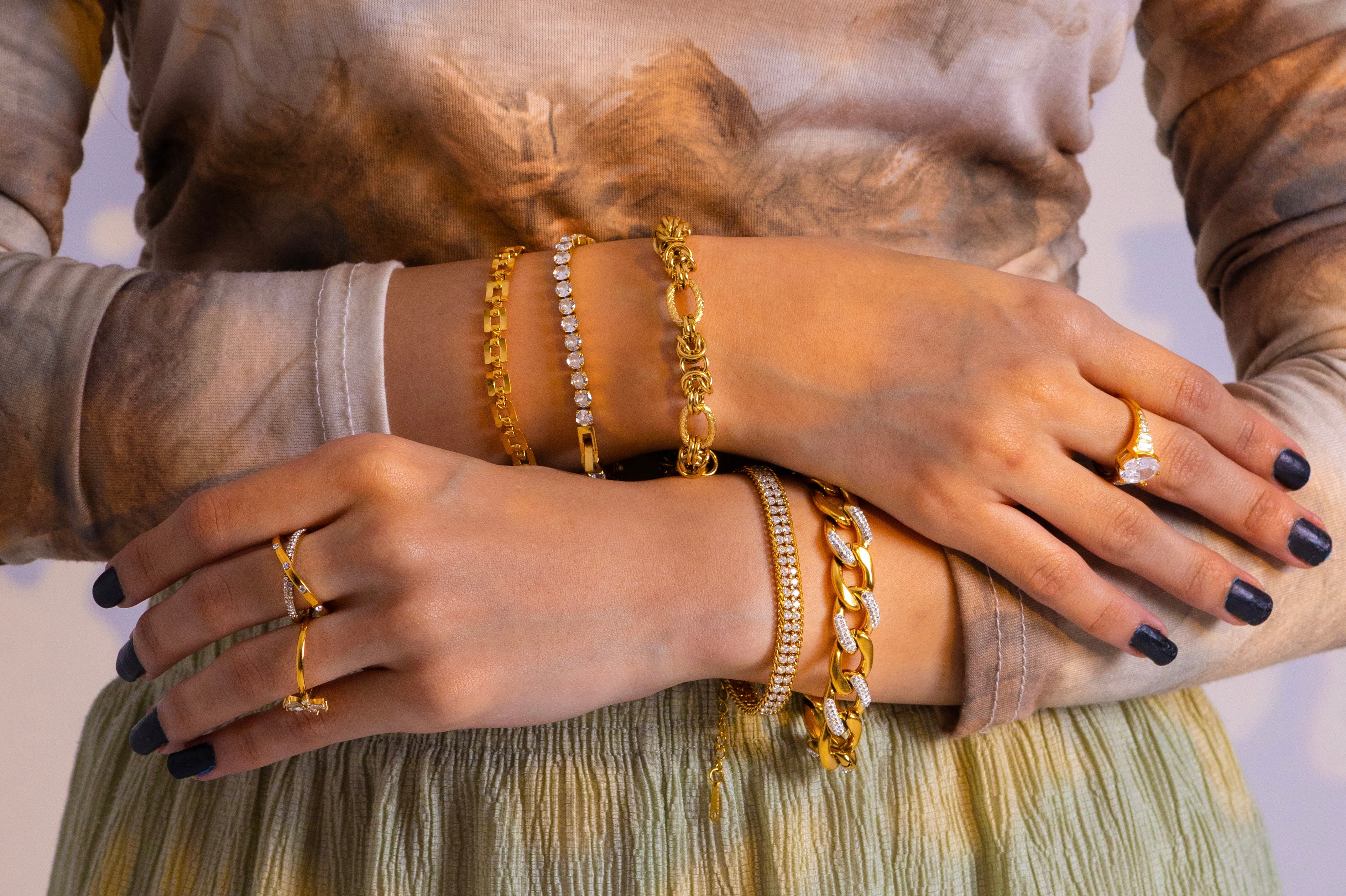 Product Info: Our stainless steel jewelry, meticulously crafted with 18k gold PVD plating for enduring beauty and durability. Designed for comfort and safety, our pieces are waterproof and resistant to tarnishing, ensuring effortless style without compromise. Enjoy timeless elegance and long-lasting quality with minimal maintenance, perfect for those with sensitive skin.
